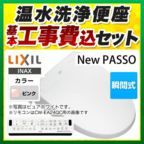 【楽天リフォーム認定商品】【工事費込セット(商品+基本工事)】[CW-EA24QB-LR8] LIXIL 温水洗浄便座 New PASSO パッソ シャワートイレ 瞬間式 鉢内除菌 フルオート便座 温風乾燥 平付・隅付タンク式便器用 フルオート便器洗浄あり ピンク 壁リモコン付属